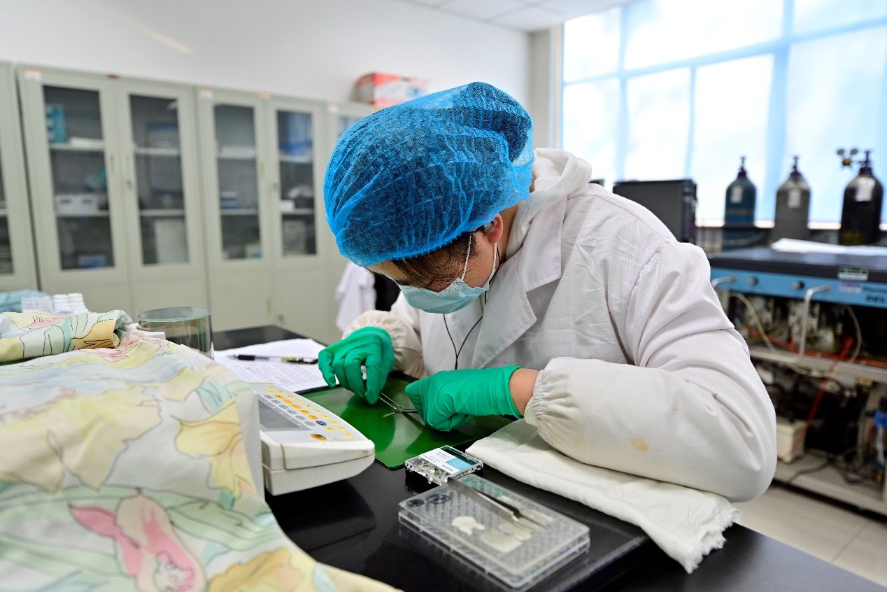 马敏敏团队成员在实验室处理骨胶原样品。受访者供图